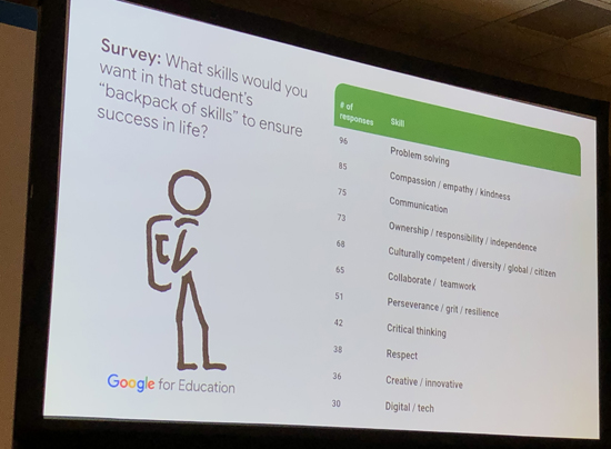 When asked, “What skills would you want in the student’s backpack of skills to ensure success in life”, the answers covered a broad territory.